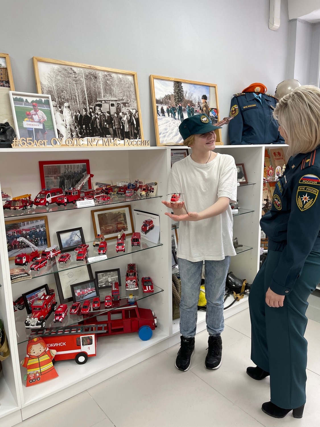 Также в рамках межведомственного взаимодействия все дружно посетили музей пожарной охраны, расположенный в МБОУ СОШ № 117, где узнали много интересного о возникновении пожарной службы в городе, смогли примерить пожарную атрибутику, посмотреть экспонаты, представленные на выставке.